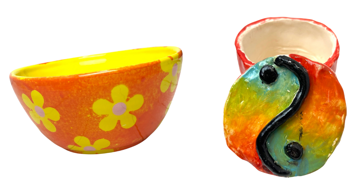 You will leave our camps this week with colorful pieces that are sure to make you feel GROOVY every time you use them! You will use new painting techniques to create this flower bowl, and you will hand build a yin-yang box from clay.