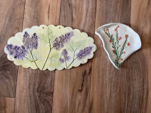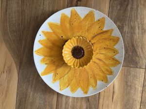 We will do a summer dipping set. The plate and dipping dish will form a sunflower to brighten up your summer barbeques. Chips, dips, and sauces of all kinds.