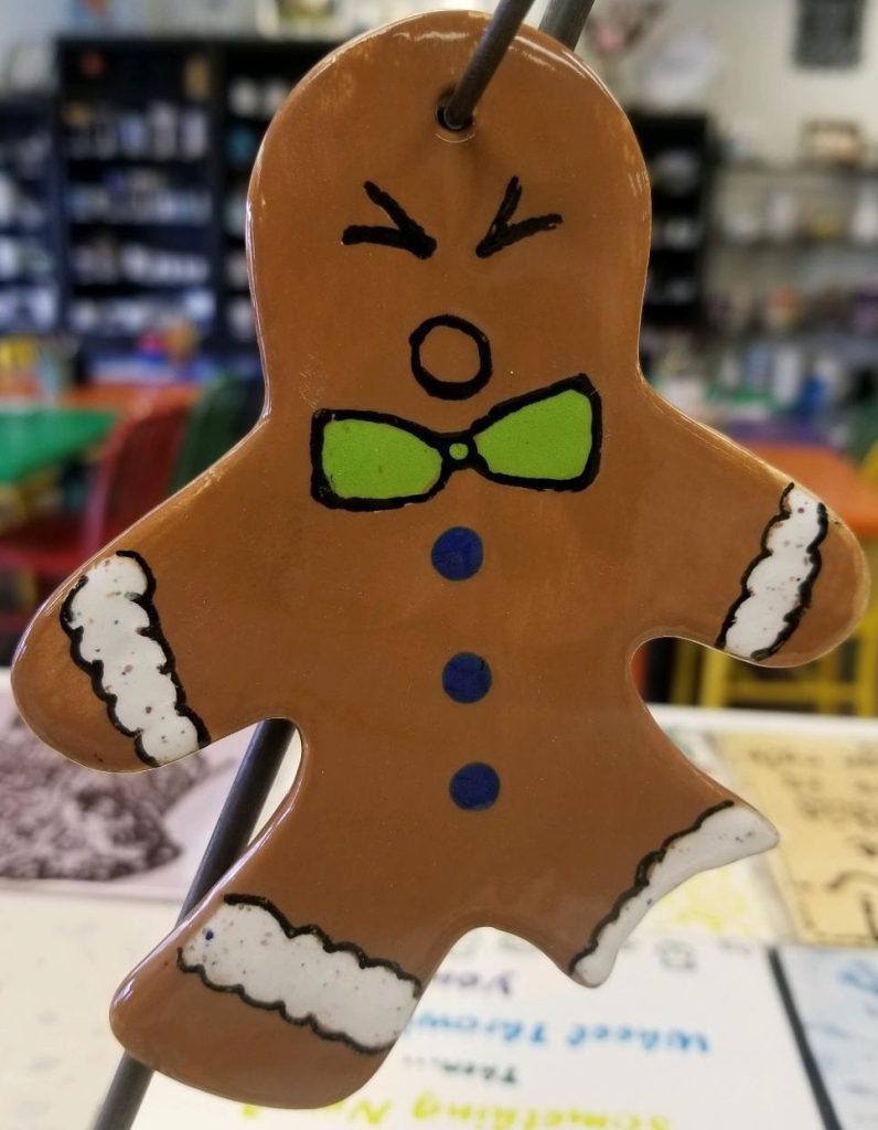 We are celebrating family and school community tonight at Pear Park Elementary.  This event is held at the school cafeteria.  Students, teachers, administrators and their families are gathering to paint holiday ornaments.  We will take them to the studio and fire them and return them to the school for distribution next week.  This event is a fundraiser for the school Parent Teacher group and will help support student-based programs.