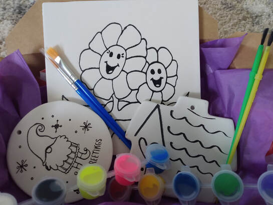 You can custom order ornaments and paint to enjoy at home with your family. We send acrylic paint with the ornaments, one set of paint pods per 2 ornaments. You can choose colors to add to a set group of colors. We will send you red, yellow, blue, white and black -- you choose three additional colors. If no additional colors are chosen, orange, purple, and green will be included as well. One set of pods will easily do 2 ornaments. You will also receive brushes which are yours to keep with no extra charge. If you do not need the brushes, please let us know.