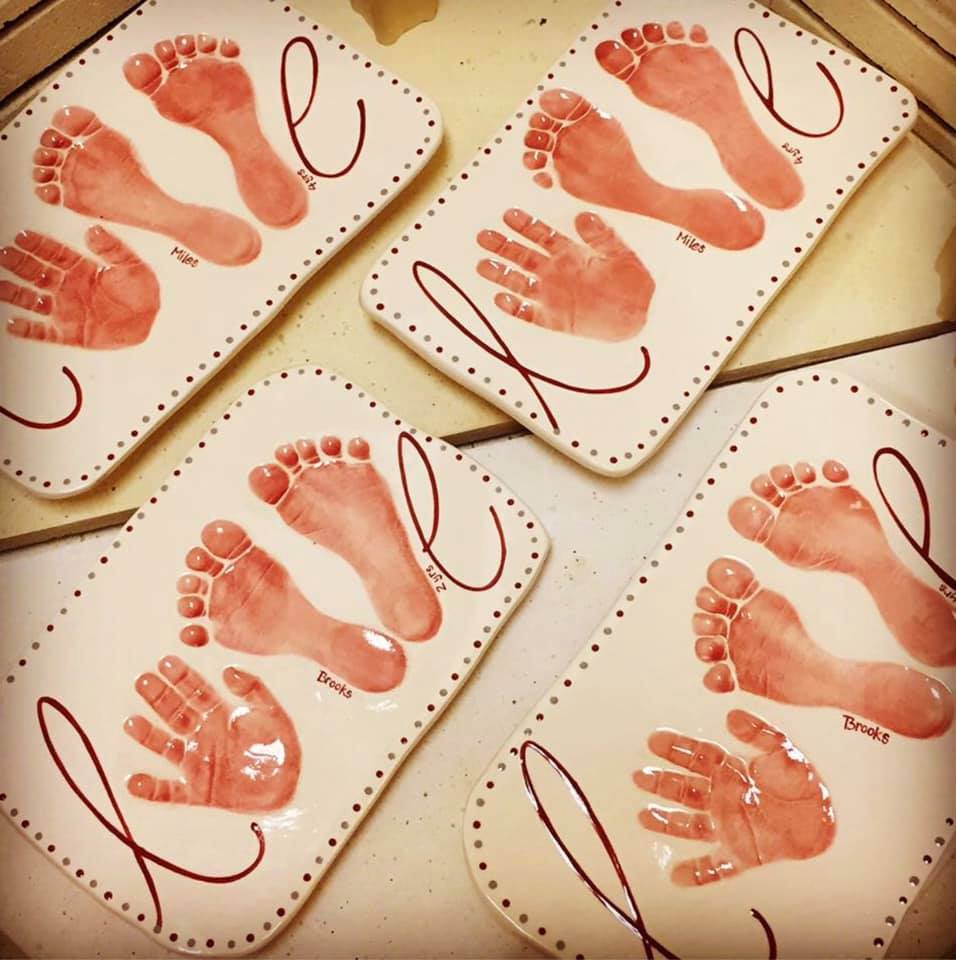 Come in and let us make a lasting memory piece for your family. Children’s handprints can be preserved into adorable ornaments or hanging plaques for your family to enjoy to decades to come. Bring in the child, we will do a deep press handprint or footprint and turn the piece into something special for your home or Christmas tree. These make terrific gifts for parents, grandparents, aunts and uncles, and even siblings.