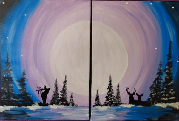 This beautiful canvas set is perfect for anyone living in Colorado. Enjoy this with your a loved one. You choose the size. $35 includes 2 8 X 10 canvases This kit comes with brushes and aprons and, of course, paint and canvas.