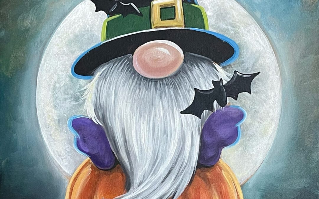 Isn’t he delightful! We think so. Canvas painting of this adorable gnome with a spooky bent. This will add a great deal to your holiday décor. Enjoy the fun with a family member or friend. We will have snacks and sodas. No alcohol with this one. Great for...